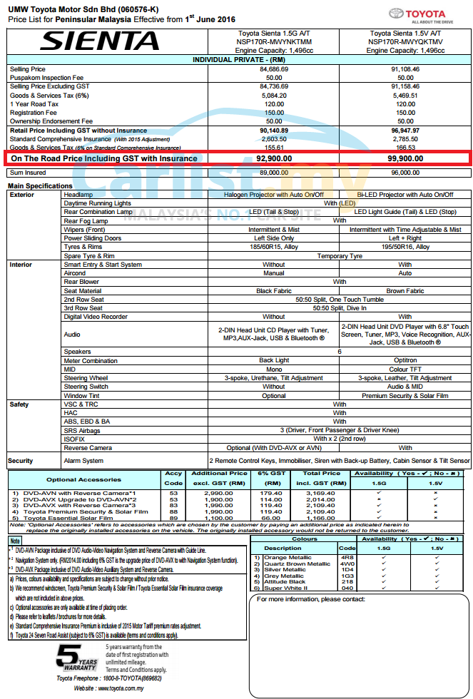 UMW Toyota Motors Sdn Bhd brings All New Toyota Sienta to our Market, Two varints will be offered- the Sienta G which will be priced at RM 92,900 and Sienta V (higher spec) will be at RM 99,900, on the road with insurance.